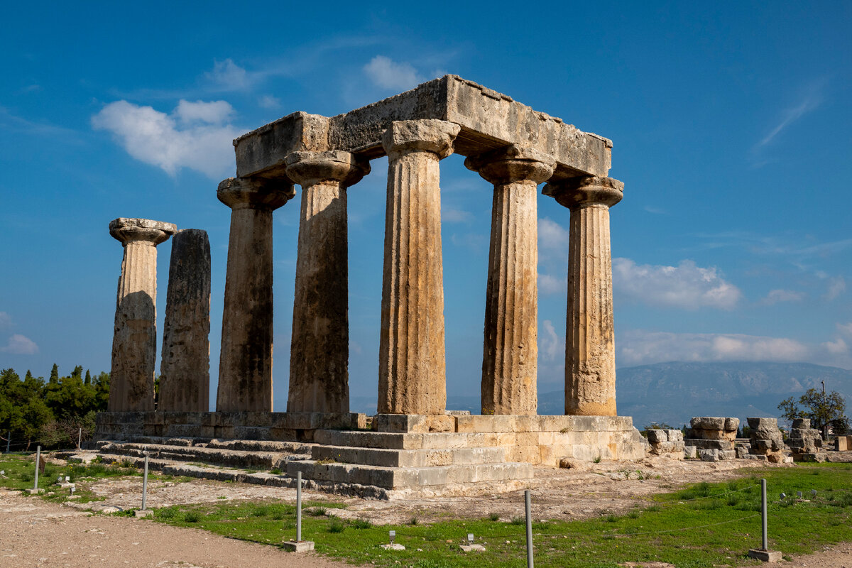 Древний Коринф был заселен уже со времен неолита (6500-3250 гг. до н.э.). Город, известный с микенских времен, упоминается Гомером как «afneios» - богатый, из-за его особенно плодородной земли. Крупное производство сельскохозяйственных продуктов уже с ранних исторических времен способствовало развитию интенсивной коммерческой деятельности, в основном в направлении западного Средиземноморья, а в 8 веке до н.э. были основаны коринфские колонии, такие как Корфу в Ионическом море и Сиракузы на Сицилии, сыгравшие важную роль и внесшие огромный вклад в историю древнего Средиземноморья. Экономическое процветание города достигло своего пика в 7-6 веках до нашей эры, под управлением тирана Кипселоса и его сына Периандра. В Пелопоннесской войне (431–404 гг. до н. э.) Коринф открыто встал на сторону Спарты, с самого начала призывая ее к военному обращению против афинян. Однако, несмотря на поражение Афин и несмотря на участие в ряде военных операций, включая так называемую «Коринфскую войну» против Спарты (395-387 гг. до н.э.), Коринфу так и не удалось вернуть былое могущество. Организация панэллинской конференции в Коринфе в 337 г. до н.э. королем Македонии Филиппом II , недавно возникшей державой греческого мира, временно вернула ее на первый план, однако Коринф очень быстро подчинился македонцам. От Македонского ига Коринф освободился в 243 г. до н.э. под предводительством Арата Сикиония, за этим последовало его присоединение к Ахейскому Содружеству, федерации городов-государств на юге Греции. Однако противостояние Содружества с Римом привело в 146 г. до н.э. в знаменитой битве при Лефкопетре, в районе перешейка, где греческие войска были разбиты римскими легионами под предводительством Луция Муммия. Кроме своего таланта, позволявшего ему покорять города и государства, этот военачальник имел склонность к жестокости: он вырезал всех мужчин в Коринфе, а молодых девушек, женщин и их детей продал в рабство. Город с его храмами, двумя портами и массой жилых домов тиран попросту разрушил и сжег дотла.